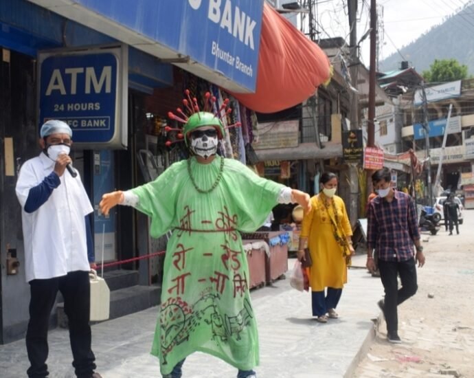 सुरभि न्यूज़ कुल्लू। नाक-मुंह पर मास्क तथा दो गज की सामाजिक दूरी कोरोना संक्रमण से बचाव व इसके फैलाब को रोकने के लिए सभी को है बेहद जरूरी। यह संदेश बंजार विधानसभा क्षेत्र के अंतर्गत बंजार नगर, पुराना बस स्टैंड, शेगलू तथा रोनाला बाजार में स्थानीय गीत-संगीत कलंा मंच केContinue Reading