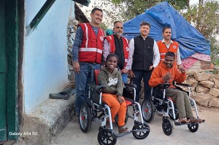 ऑटोमेटिक व्हीलचेयर देने के लिए रेड क्रॉस की ओर से वीरेंद्र बिष्ट के अलावा उमंग फाउंडेशन की ओर से प्रो. श्रीवास्तव, विनोद योगाचार्य, राजेश कश्यप और स्थानीय सामाजिक कार्यकर्ता सोहनलाल परिहार भी अनीता और सुनील के घर गए ।