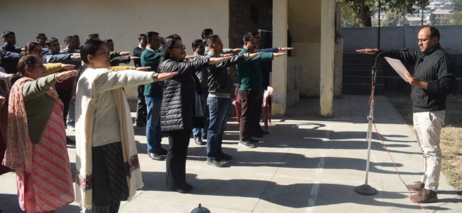 संविधान दिवस के अवसर पर सहायक आयुक्त शशि पल नेगी ने उपायुक्त कार्यालय के कर्मचारियों को संविधान की उद्देशिका की शपथ दिलाई। उन्होंने कहा कि संविधान सभा में 26 नवंबर 1949 ई. में भारतीय संविधान को प्रत्येक भारतीय की और से अंगीकृत, अधिनियमित और आत्मार्पित किया गया था।