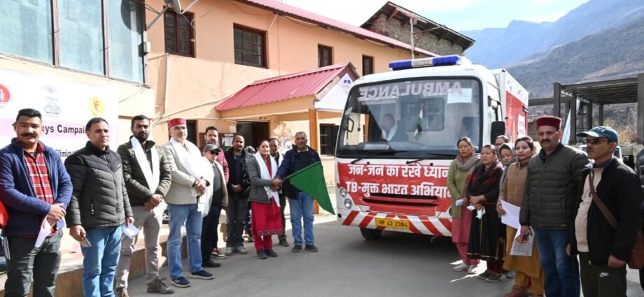 जनजातिय जिला लाहौल स्पिति में क्षय रोग सबंधी स्क्रीनिंग के लिए राष्ट्रीय टीबी उन्मूलन अभियान के अतंर्गत 100 दिन का अभियान प्रारम्भ शुरू हो गया जिला परिषद अध्यक्षा बीना देवी ने जन जन का रखे ध्यान टीबी मुक्त भारत अभियान का प्रारम्भ उपायुक्त कार्यालय के परिसर से निक्षय वाहन को हरी झण्ड़ी दिखाकर किया।