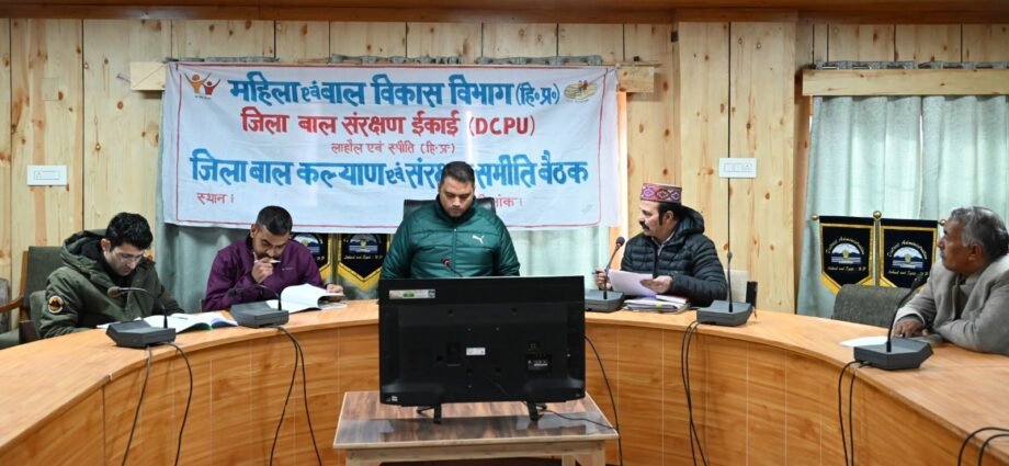 सहायक आयुक्त लाहौल स्पीति संकल्प गौतम की अध्यक्षता में मंगलवार को उपायुक्त कार्यालय के सभागार कक्ष में जिला बाल संरक्षण इकाई बैठक आयोजित की गई। जिसमें विभिन्न मुद्दों जुवैनाइल जस्टिस बोर्ड, चाइल्ड वेलफेयर कमेटी, स्पेशल जुवैनाइल पुलिस युनिट सहित प्रदेश सरकार के फ्लैगशिप कार्यक्रम सुखाश्रय के मामलों की समीक्षा की गई।