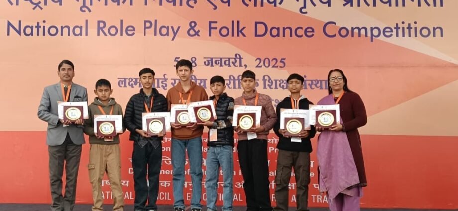 ग्वालियर में संपन्न राष्ट्रीय लोकनृत्य प्रतियोगिता में एनसीईआरटी द्वारा छात्रों और एस्कॉर्ट टीचर्स को राष्ट्रीय प्रतीक सत्यमेव जयते युक्त समृद्धि चिन्ह वॉटर बॉटल एक एक बैग तथा प्रतिभागिता प्रमाण पत्र देखकर पुरस्कृत किया। राष्ट्रीय लोकनृत्य का थीम बदलते पारिवारिक मूल्यों की स्क्रिप्ट विद्यालय के प्रवक्ता अंग्रेजी श्यामानंद ने लिखी तथा कोरियोग्राफी की भूमिका में शास्त्री आशा देवी ने अपने सर्वोत्तम् दायित्व का निर्वहन किया।