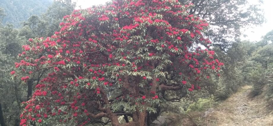 छोटाभंगाल व चौहार घाटी प्रतिवर्ष की भांति इस वर्ष भी बुरांस के लाल व गुलाबी रंगों के फुलों से गुलजार हो गई है । दोनों घाटियों के जंगल बुरांस के छोटे व बडे़ पेड़ बुरांस के फुलों से लबालव भरकर दुल्हन की तरह सज गए है।
