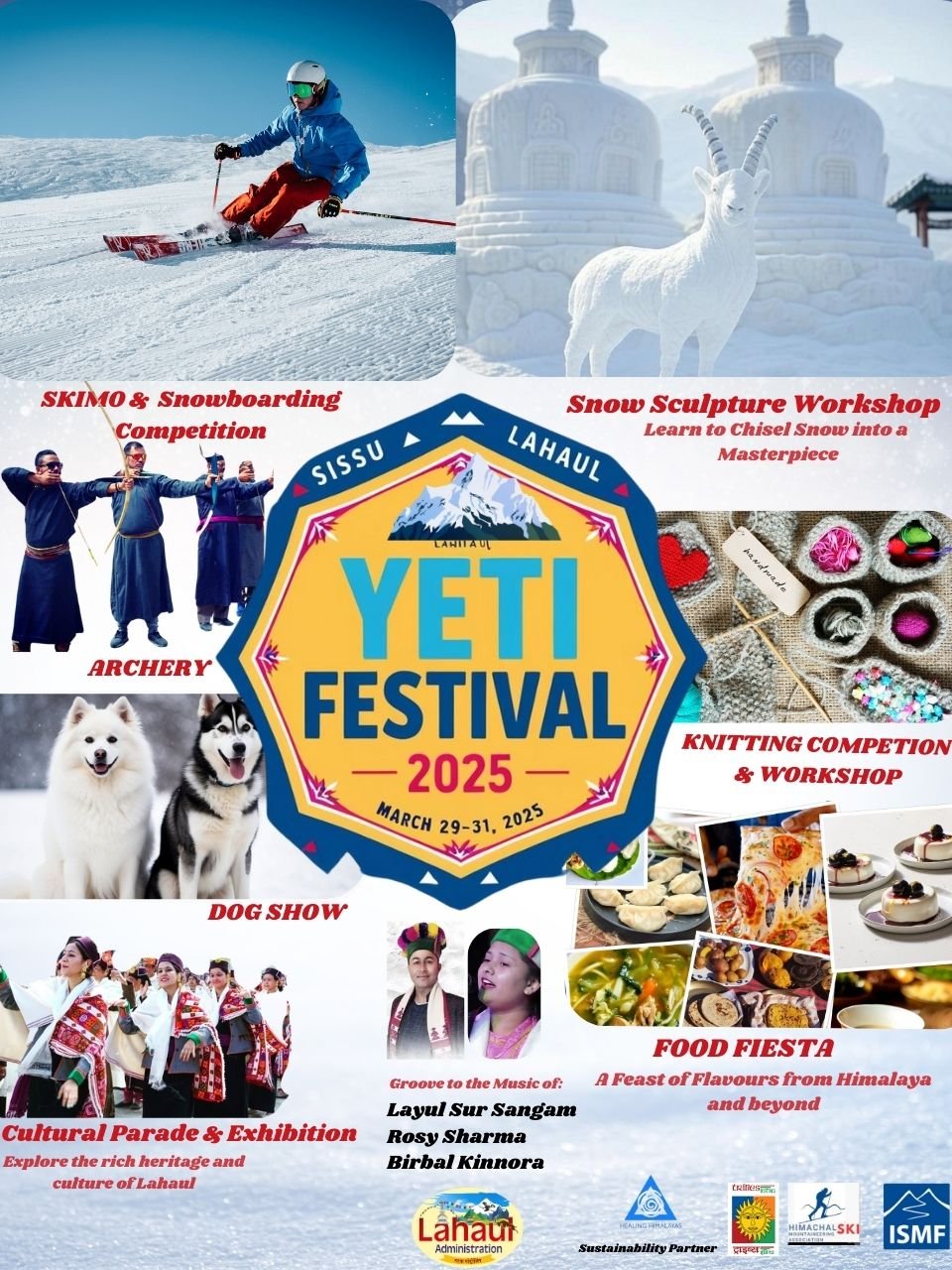 लाहौल घाटी में फरवरी माह में शुरु हुए स्नो फेस्टिवल यती उत्सव -2025 अब अपने अंतिम चरण की ओर अग्रसर हो रहा है। मार्च 29 से मार्च 31 तक यती उत्सव के अंतिम चरण को जिला के प्रवेश द्वार सिस्सू में मनाया जा रहा है। प्रशासन के द्वारा इस अंतिम उत्सव को बहुत ही उत्साह के साथ सम्पन्न करने का प्रयास किया जा रहा है। इस उत्सव में मुख्य आकर्षक में तीरंदाजी, हिम मूर्तिकला, स्कीइंग प्रतियोगिया लाहौली परम्परा को दर्शाती शोभा यात्रा, लाहौली व्यंजन व विभिन्न स्थानीय उत्पादन मुख्य आकर्षण रहेंगे। इसके अतिरिक्त हिमाचली कलाकार रोजी शर्मा, रूबीना, आकाश, बीरबल किन्नौरा व रमेश ठाकुर भी तीन दिनों के दौरान अपनी रंगारंग मधुर आवाज में प्रस्तुतियां देंगे।
