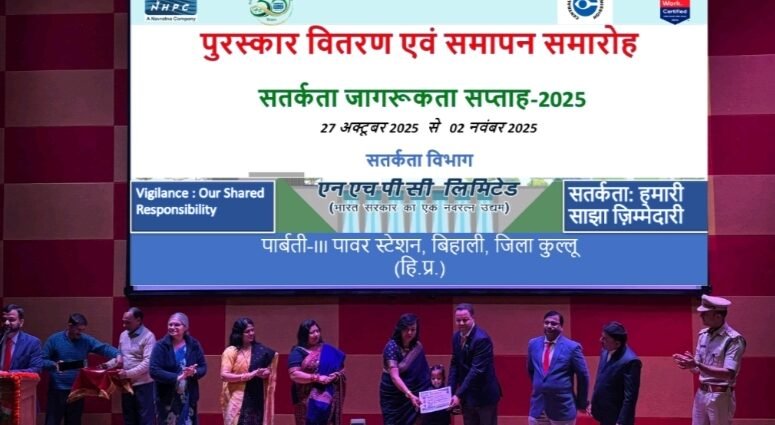 एनएचपीसी के पार्बती-III पावर स्टेशन में सतर्कता जागरूकता सप्ताह -2025 का 07 नवम्बर को समापन समारोह सफलतापूर्वक संपन्न किया गया। इस वर्ष सतर्कता जागरूकता सप्ताह के विषय “सतर्कताः हमारी साझा जिम्मेदारी” के आधार पर कार्मिकों एवं उनके परिवार के सदस्यों के लिए विभिन्न प्रतियोगिताओं का आयोजन किया गया।