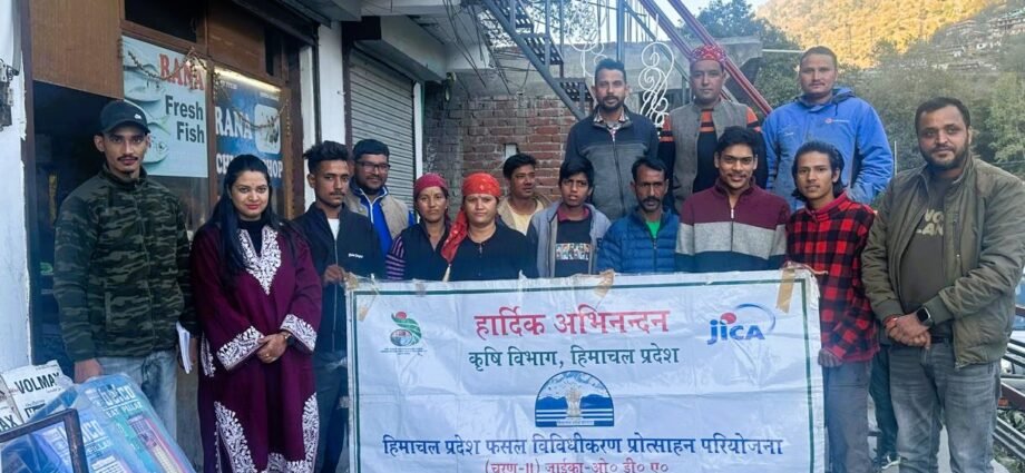 हिमाचल प्रदेश में चल रहे फसल विविधीकरण प्रोत्साहन परियोजना (चरण II) जायका- ओo डीo एo के तहत खण्ड परियोजना प्रबंधन इकाई कुल्लू, के अंतर्गत आने वाले 20 लाभार्थियों को आजीविका गतिविधियों के लिये साढ़े चार माह के प्रशिक्षण कार्यक्रम का शुभारंभ ग्राम पंचायत बरान व काईस में किया गया ।