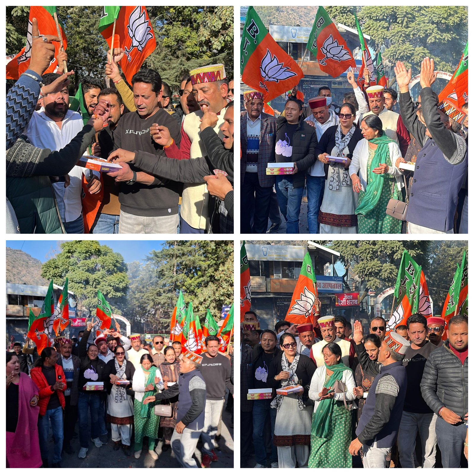 उन्होंने कहा कि बिहार चुनावों में जिस प्रकार के ओछे हथकंडे कांग्रेस और उसके सहयोगी दलों ने अपनाए और समाज को बांटने के प्रयास किए उन सबका करारा जवाब बिहार की जनता ने दिया और मोदी नीतीश की जोड़ी पर विश्वास कर उन्नत बिहार का मार्ग प्रशस्त किया। उन्होंने भाजपा और उसके सहयोगी दलों पर बिहार की जनता द्वारा जताए विश्वास के लिए उन्हें धन्यवाद दिया और बड़ी जीत पर बधाई दी। इस मौके पर नरोतम ठाकुर, दानवेंद्र सिंह, राहुल सोलंकी, जिला महामंत्री नवल नेगी, नैना शर्मा, नरेश चौहान, निलेश गौतम, युवा मोर्चा गौतम अध्यक्ष दिग्विजय, महिला मोर्चा अध्यक्ष बिंदिया सूद, संजीव पंडित, सहित भारतीय जनता पार्टी के सभी पदाधिकारी एवं कार्यकर्ता उपस्थित रहे।