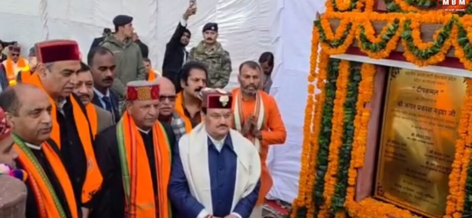 सुरभि न्यूज़, शिमला : भाजपा के राष्ट्रीय अध्यक्ष जगत प्रकाश नड्डा ने एयरपोर्ट रोड पर डीएवी स्कूल के पास मजठाई में भाजपा के प्रदेश कार्यालय का शिलान्यास किया। शिलान्यास स्थल पर कार्यकर्ताओं ने उनका भव्य स्वागत किया। नड्डा ने शिलान्यास पूजन में भाग लिया और शिलान्यास पट्टिका का अनावरण किया।