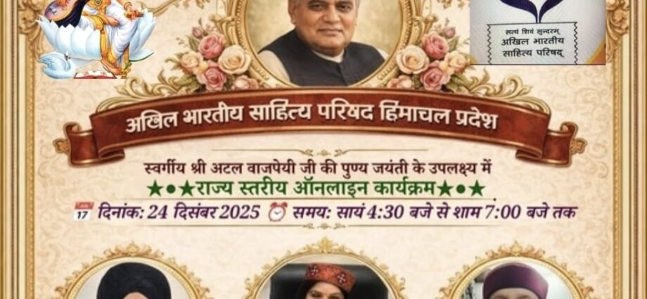 अखिल भारतीय साहित्य परिषद् हिमाचल प्रदेश इकाई ने अटल बिहारी वाजपेयी की 101वीं जयंती की पूर्व संध्या पर 24 दिसंबर को राज्य स्तरीय ऑनलाइन सायं 4:30 बजे से शाम 7:00 बजे तक साहित्यिक आयोजन किया गया।