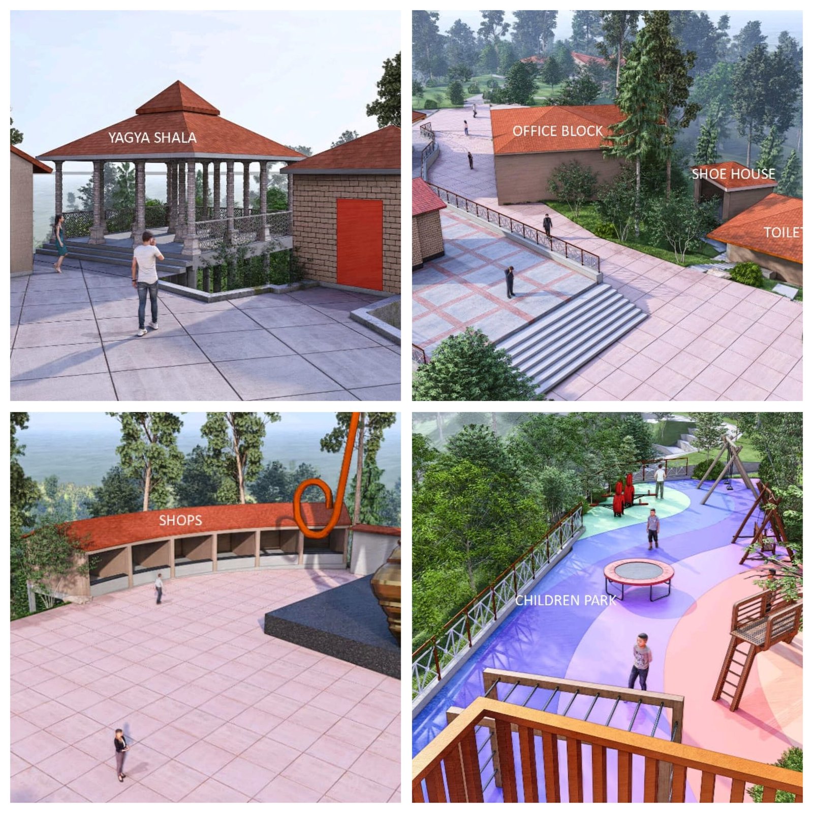 यज्ञशाला का होगा निर्माणप्रोजेक्ट के अनुसार मंदिर परिसर में एक यज्ञशाला का निर्माण करवाया जाना प्रस्तावित है। ये यज्ञशाला मंडप आधार पर बनेगी। इसमें वेदों के अनुसार 16 पिलर 32 रूफ सपोर्टिंग काॅल, एक गंडूक, वेदी, तोरन, ध्वज, पताका आदि होंगे। ये सब कार्य हिंदू संस्कृति की पारम्परिक शैलियों के अनुसार ही होगा।